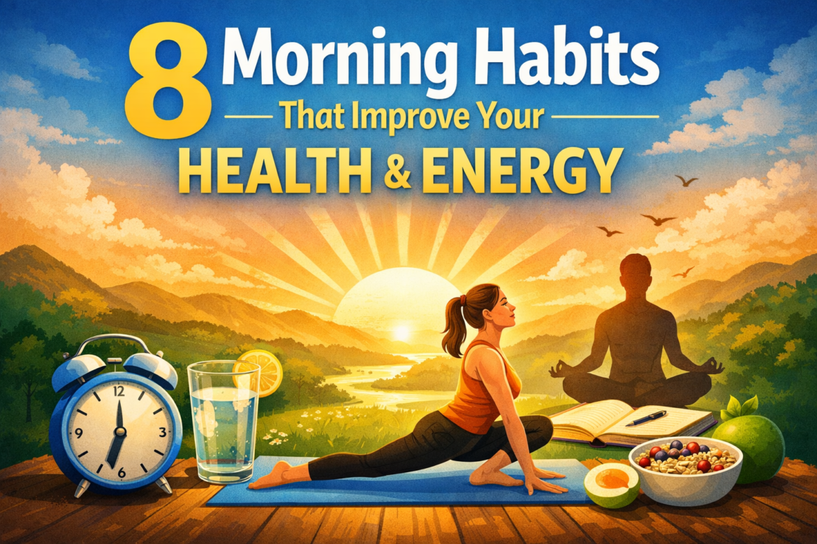 Health 8 Morning Habits That Improve Your Health and Energy (Backed by Science) by mario March 11, 2026 written by mario March 11, 2026 Bookmark 3 8 Morning Habits That Improve Your Health and Energy The way you start your morning can shape the entire direction of your day. Many highly productive and healthy people attribute their success to the routines they follow immediately after waking up. Morning habits are not just about waking up early or drinking coffee; they are about creating a lifestyle that supports your physical health, mental clarity, and emotional well-being. If you often feel tired, unfocused, or stressed throughout the day, your morning routine might be the reason. Small changes in how you start your day can dramatically improve your energy levels, mood, and productivity. In this guide, we’ll explore 8 powerful morning habits that improve your health and energy. These habits are simple, practical, and backed by science. When practiced consistently, they can transform the way you feel every day. Why Morning Habits Matter for Your Health and Energy Morning routines influence both your body and your mind. When you start your day intentionally, you prepare yourself mentally and physically for the challenges ahead. Instead of rushing through your morning in stress and confusion, you create a calm and structured beginning that helps you stay focused and productive. Healthy morning habits can: Increase energy levels throughout the day Improve mental clarity and focus Boost mood and emotional stability Support long-term physical health Reduce stress and anxiety Many people underestimate the power of small daily routines. However, consistent habits practiced every morning can create long-term changes in your lifestyle and overall health. 1. Wake Up Early and Maintain a Consistent Sleep Schedule One of the most powerful habits for improving your health and energy is waking up early and maintaining a consistent sleep schedule. Your body operates on an internal clock known as the circadian rhythm. This rhythm regulates when you feel awake and when you feel sleepy. When you wake up at different times each day, your body becomes confused, which can lead to fatigue, poor concentration, and low energy levels. Maintaining a regular wake-up time helps your body function more efficiently. Benefits of Waking Up Early More time for self-care and personal development Improved mental clarity in the morning Better sleep quality at night Reduced morning stress and rushing Waking up early does not necessarily mean waking up at 4 AM. The key is consistency. Choose a time that works for your lifestyle and stick to it every day, even on weekends. 2. Drink Water Immediately After Waking Up After several hours of sleep, your body becomes slightly dehydrated. Drinking water first thing in the morning helps rehydrate your body and support essential bodily functions. Hydration plays a crucial role in maintaining energy levels, supporting digestion, and improving brain function. Even mild dehydration can lead to fatigue, headaches, and difficulty concentrating. Why Morning Hydration Matters Boosts metabolism Improves digestion Enhances brain performance Helps flush out toxins Many health experts recommend drinking a glass of water immediately after waking up before consuming coffee or tea. Adding lemon can provide extra vitamin C and support digestion. 3. Move Your Body with Light Exercise Physical activity in the morning is one of the best ways to increase energy levels. Exercise stimulates blood circulation and releases endorphins, which are natural chemicals that improve mood and reduce stress. Morning exercise does not need to be intense. Even a few minutes of stretching or light movement can help wake up your body and mind. Simple Morning Exercises Stretching exercises Yoga or mobility movements Walking or jogging Bodyweight workouts Just 10 to 20 minutes of exercise can significantly improve your energy levels and mental focus for the rest of the day. 4. Practice Mindfulness or Meditation Mental health is a critical component of overall wellness. Starting your day with mindfulness or meditation can help you manage stress and maintain emotional balance. Meditation allows you to focus on the present moment and clear your mind of unnecessary worries. This habit is especially helpful in today’s fast-paced digital world where distractions are everywhere. Benefits of Morning Meditation Reduces stress and anxiety Improves concentration Enhances emotional resilience Promotes a sense of calm You don’t need long sessions to experience the benefits. Even five minutes of deep breathing or quiet reflection can improve your mental clarity. 5. Eat a Healthy and Balanced Breakfast Breakfast provides the fuel your body needs after fasting overnight. A balanced breakfast supports brain function, energy levels, and metabolism. Skipping breakfast may lead to fatigue, irritability, and overeating later in the day. What Makes a Healthy Breakfast? Protein for muscle repair and energy Healthy fats for brain health Complex carbohydrates for sustained energy Healthy Breakfast Ideas Oatmeal with fruits and nuts Eggs and whole-grain toast Smoothies with fruits and yogurt Greek yogurt with granola Avoid highly processed foods or sugary cereals that can cause energy crashes. 6. Get Exposure to Natural Sunlight Sunlight plays a vital role in regulating your body’s biological clock. Exposure to natural light in the morning helps signal your brain to wake up and become alert. Morning sunlight also supports vitamin D production, which is essential for bone health, immune function, and mood regulation. Ways to Get Morning Sunlight Open your curtains immediately after waking up Take a short walk outdoors Sit near a window while drinking tea or coffee Just 10 to 15 minutes of natural sunlight can improve your mood and energy levels. 7. Plan Your Day and Set Priorities A clear plan for the day helps you stay organized and produ