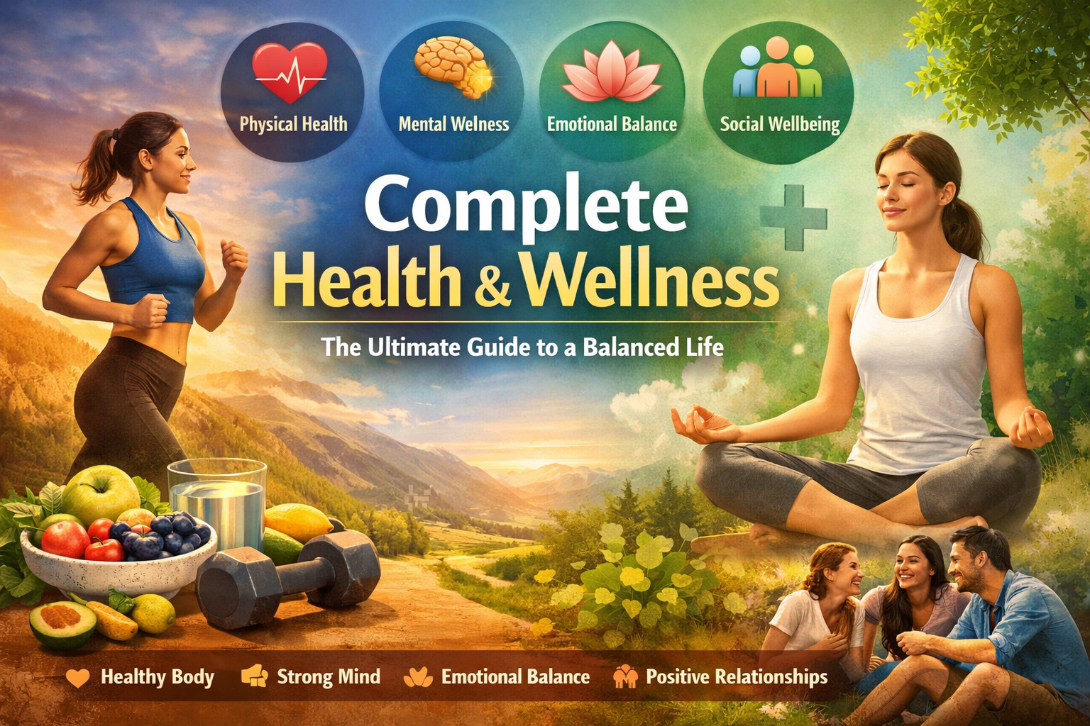 Complete Health and Wellness: The Ultimate 360° Guide to a Balanced Life Introduction In today’s fast-paced world, achieving complete health and wellness has become more important than ever. Many people mistakenly believe that being healthy simply means not being sick. However, true wellness goes far beyond physical health—it encompasses your mental clarity, emotional stability, and social connections. Complete health and wellness is about creating balance in every area of your life. It means feeling energized, thinking clearly, managing your emotions effectively, and maintaining meaningful relationships. This guide will provide a comprehensive roadmap to help you achieve total well-being and live your best life. Understanding Complete Health and Wellness Complete wellness is a holistic concept that integrates multiple dimensions of health. Rather than focusing on just one area, it emphasizes the importance of balance across all aspects of life. The Four Core Pillars of Wellness Physical Health: The condition of your body and how well it functions Mental Health: Your cognitive abilities and thought processes Emotional Wellness: Your ability to manage and express emotions Social Wellness: The quality of your relationships and interactions When these pillars are aligned, you experience a sense of harmony and fulfillment that enhances your overall quality of life. 1. Physical Health: Building a Strong Foundation Nutrition: Fueling Your Body the Right Way A balanced diet is essential for maintaining optimal health. Your body requires a variety of nutrients to function effectively, including proteins, carbohydrates, healthy fats, vitamins, and minerals. Focus on consuming whole, unprocessed foods such as fruits, vegetables, lean proteins, and whole grains. Avoid excessive sugar, salt, and processed foods, as they can lead to chronic diseases. For better results, follow this guide [Healthy Eating for Beginners] Click here to read more. The Importance of Hydration Water is vital for nearly every function in your body. Staying hydrated improves digestion, boosts energy levels, and supports brain function. Exercise: Moving Your Body Daily Regular physical activity helps maintain a healthy weight, strengthens muscles, and improves cardiovascular health. Aim for at least 150 minutes of moderate exercise per week. Walking or jogging Strength training Yoga or stretching Sports and recreational activities Sleep: The Power of Rest and Recovery Sleep is often overlooked but is crucial for overall health. Adults should aim for 7–9 hours of quality sleep each night. Poor sleep can negatively affect your immune system, mood, and productivity. 2. Mental Health: Strengthening Your Mind Understanding Mental Wellness Mental health influences how you think, feel, and behave. It affects your ability to handle stress, make decisions, and interact with others. Managing Stress Effectively Chronic stress can lead to serious health issues. Learning how to manage stress is essential for maintaining mental wellness. Practice deep breathing exercises Engage in meditation Take breaks and rest when needed Organize your daily tasks Developing a Growth Mindset A growth mindset allows you to view challenges as opportunities for learning and improvement. This perspective can significantly enhance your mental resilience. Limiting Negative Influences Reduce exposure to negativity, whether from social media, toxic environments, or unhealthy relationships. Surround yourself with positivity and inspiration. 3. Emotional Wellness: Mastering Your Feelings What is Emotional Intelligence? Emotional intelligence is the ability to recognize, understand, and manage your emotions effectively. Practicing Self-Awareness Self-awareness helps you identify your emotional triggers and respond appropriately. Healthy Ways to Cope with Emotions Journaling your thoughts Talking to someone you trust Practicing relaxation techniques Engaging in creative activities The Role of Self-Care Self-care involves taking intentional actions to improve your well-being. It can include anything from taking a break to engaging in hobbies you enjoy. 4. Social Wellness: Building Meaningful Connections Why Relationships Matter Humans are social beings, and strong relationships are essential for happiness and well-being. Improving Communication Skills Effective communication helps build trust and resolve conflicts. Practice active listening and express yourself clearly. Setting Healthy Boundaries Boundaries protect your mental and emotional health. Learn to say no when necessary and prioritize your well-being. Creating a Support System Surround yourself with supportive and positive individuals who encourage your growth and well-being. Daily Habits for Complete Health and Wellness Consistency is key when it comes to achieving wellness. Incorporating healthy habits into your daily routine can lead to long-term benefits. Start your day with a healthy breakfast Exercise regularly Stay hydrated Practice gratitude Limit screen time Get enough sleep Common Mistakes to Avoid Ignoring mental health Skipping meals or overeating Lack of physical activity Not managing stress effectively Neglecting relationships Benefits of Complete Health and Wellness When you prioritize your well-being, you experience: Improved physical health Better emotional stability Enhanced mental clarity Stronger relationships Greater happiness and life satisfaction Conclusion Complete health and wellness is a lifelong journey, not a destination. By focusing on all aspects of your well-being—physical, mental, emotional, and social—you can create a balanced and fulfilling life. Start small, stay consistent, and remember that every step you take toward wellness is a step toward a better, healthier you. For more tips on Complete Health and Wellness, check out our health and wellness category Click here to read more.