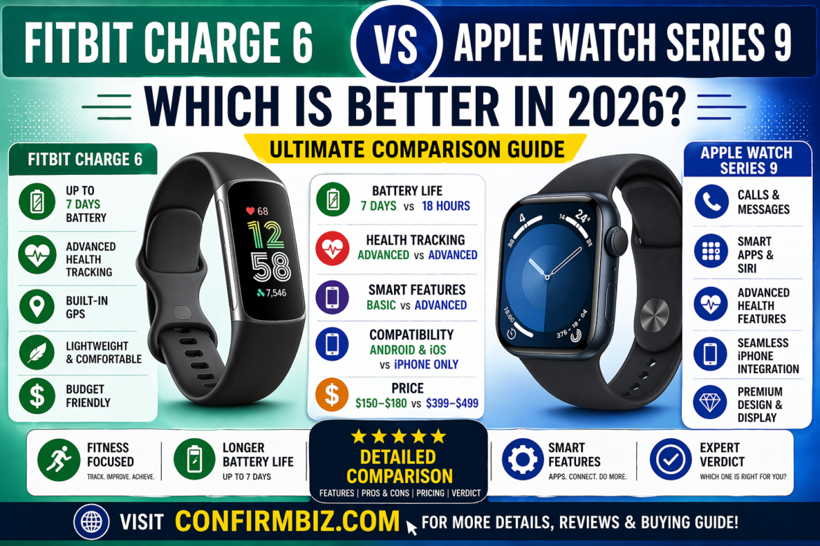 Fitbit Charge 6 vs Apple Watch Series 9: Which Is Better in 2026? Introduction Wearable technology has become an essential part of modern life, helping millions of people track their health, improve fitness, and stay connected. Among the top contenders in this space are the Fitbit Charge 6 and the Apple Watch Series 9. While both devices offer powerful features, they are built for different audiences. One is a dedicated fitness tracker focused on long-term health insights, while the other is a premium smartwatch designed to integrate seamlessly into your digital lifestyle. If you’re trying to decide which one is better, this comprehensive guide will walk you through every detail — from design and battery life to real-world performance and value for money. By the end, you’ll know exactly which device suits your needs. Full Detail Comparison Table Feature Fitbit Charge 6 Apple Watch Series 9 Device Type Fitness Tracker Smartwatch Display AMOLED Touchscreen Always-On Retina OLED Battery Life Up to 7 days Up to 18 hours Health Sensors Heart Rate, ECG, SpO2, Stress Heart Rate, ECG, Blood Oxygen, Temperature GPS Built-in GPS Advanced GPS + precision tracking Smart Features Basic notifications Apps, calls, messaging, Siri Compatibility Android & iOS iPhone only Water Resistance 50 meters 50 meters Price $150 – $180 $399 – $499 Tools Overview Fitbit Charge 6 Overview The Fitbit Charge 6 is built with one goal in mind: helping users improve their health and fitness. It focuses heavily on tracking physical activity, heart rate, sleep quality, and stress levels. Unlike traditional smartwatches, it avoids unnecessary distractions. This makes it ideal for people who want accurate insights without constant notifications. It also integrates with Google services, offering features like Google Maps and YouTube Music controls, which enhance usability without turning it into a full smartwatch. Apple Watch Series 9 Overview The Apple Watch Series 9 is a premium smartwatch powered by Apple’s advanced chip technology. It goes far beyond fitness tracking by offering a full ecosystem of apps, communication tools, and smart features. With capabilities like voice control, messaging, calling, and deep iPhone integration, it acts as an extension of your smartphone. It’s designed for users who want both health tracking and digital convenience in one device. Head-to-Head Comparison 1. Design and Build Quality The Apple Watch Series 9 features a sleek, premium design with a large rectangular display that is bright, responsive, and easy to interact with. It feels like a high-end device and offers multiple case finishes and band options. In contrast, the Fitbit Charge 6 has a slim, minimalist design. It’s lighter and less bulky, making it more comfortable for continuous wear, especially during sleep or intense workouts. If style and screen size matter, Apple wins. If comfort and simplicity are your priority, Fitbit stands out. 2. Battery Life Battery life is one of the biggest differences between these devices. The Fitbit Charge 6 can last up to 7 days on a single charge, depending on usage. The Apple Watch Series 9, however, typically requires daily charging, with an average battery life of around 18 hours. For users who prefer convenience and fewer charging cycles, Fitbit clearly has the advantage. 3. Health and Fitness Tracking Both devices offer advanced health tracking features, but they approach it differently. Fitbit excels in long-term health monitoring, providing detailed insights into sleep, stress, and recovery. Its app is designed to help users understand trends over time. Apple, on the other hand, focuses on a broader health ecosystem, including ECG readings, temperature tracking, and integration with health apps. If your primary goal is fitness improvement and habit tracking, Fitbit may be the better option. If you want a wider range of health tools, Apple has the edge. 4. Smart Features and Connectivity This is where the Apple Watch Series 9 dominates. It allows you to: Make and receive calls Send messages Install apps Use voice commands Control smart home devices The Fitbit Charge 6 offers only basic notifications and limited app interactions. If you want a smartwatch experience, Apple is the clear winner. 5. Performance and Speed The Apple Watch Series 9 is powered by a more advanced processor, making it faster and smoother when navigating apps and performing tasks. Fitbit Charge 6 is optimized for efficiency rather than speed. It performs well for tracking but lacks the responsiveness of a full smartwatch. Key Features Fitbit Charge 6 Key Features Accurate heart rate tracking Sleep and stress monitoring 7-day battery life Lightweight and comfortable design Google app integration Affordable pricing Apple Watch Series 9 Key Features Advanced S9 chip for fast performance Always-on display Double Tap gesture control Full app ecosystem Seamless iPhone integration Advanced health tracking features Pros and Cons Fitbit Charge 6 Pros: Excellent battery life Budget-friendly Great for fitness tracking Comfortable for all-day wear Cons: Limited smart features Smaller display Fewer customization options Apple Watch Series 9 Pros: Premium design and display Full smartwatch functionality Powerful performance Wide app support Cons: Expensive Short battery life iPhone-only compatibility Pricing and Value for Money Pricing plays a major role when choosing between these two devices. The Fitbit Charge 6 is significantly more affordable, typically priced between $150 and $180. This makes it an excellent option for budget-conscious users who still want high-quality fitness tracking. The Apple Watch Series 9, on the other hand, starts at around $399 and can go up to $499 or more, depending on the configuration. While Apple offers more features, the higher price may not be justified for users who only need basic tracking. Who Should Use It? Choose Fitbit Charge 6 if: You want a dedicated fitness tracker You p