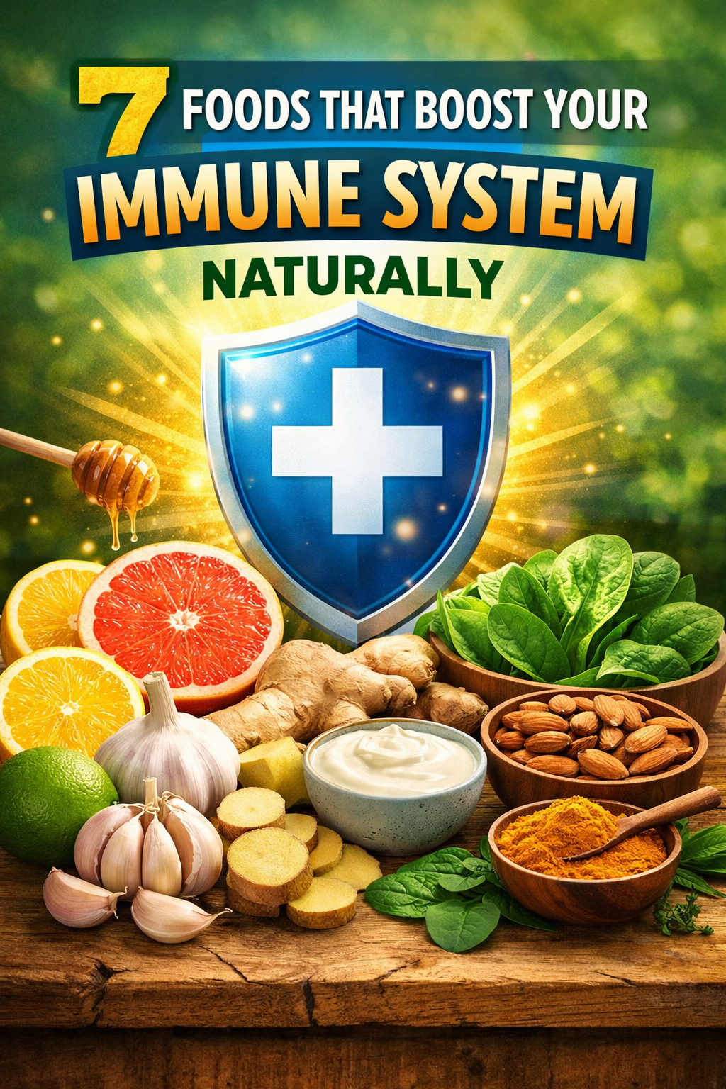 Health 7 Foods That Boost Your Immune System Naturally (Science-Backed Guide) by mario March 12, 2026 written by mario March 12, 2026 Bookmark 7 7 Foods That Boost Your Immune System Naturally Focus Keyphrase: Foods that boost immune system naturally Your immune system is the body’s natural defense against infections, viruses, bacteria, and other harmful invaders. Every day, your body encounters countless microorganisms, and your immune system works tirelessly to protect you from getting sick. However, your immune system needs the right nutrients and lifestyle habits to function properly. One of the most powerful ways to strengthen your immunity is through the foods you eat. Certain foods contain vitamins, antioxidants, minerals, and compounds that support immune cells, reduce inflammation, and help your body fight disease more effectively. Instead of relying only on supplements, nutrition experts recommend focusing on whole foods that naturally support immunity. The right diet can improve your body’s ability to prevent infections, recover faster from illness, and maintain long-term health. In this comprehensive guide, we’ll explore 7 foods that boost your immune system naturally, the science behind why they work, and how you can easily add them to your daily diet. Why Your Immune System Is So Important Before exploring the foods that strengthen immunity, it’s important to understand how the immune system works and why it plays such a critical role in your health. Your immune system is made up of a network of cells, tissues, and organs that work together to defend the body. These include: White blood cells Lymph nodes The spleen The bone marrow The digestive system Together, these components detect harmful pathogens and eliminate them before they can cause serious illness. However, factors such as poor diet, lack of sleep, stress, and sedentary lifestyle can weaken immune defenses. This is why nutrition plays such a key role in maintaining strong immunity. Now let’s explore the most powerful foods that can naturally strengthen your immune system. 1. Citrus Fruits Citrus fruits are among the most well-known foods for boosting immunity. Fruits like oranges, lemons, grapefruits, and tangerines are packed with vitamin C, one of the most important nutrients for immune health. Vitamin C helps stimulate the production of white blood cells, which are essential for fighting infections. These cells detect and destroy harmful bacteria and viruses before they spread throughout the body. Another benefit of vitamin C is its strong antioxidant properties. Antioxidants help protect immune cells from damage caused by free radicals, which are unstable molecules that contribute to inflammation and disease. Examples of Citrus Fruits That Boost Immunity Oranges Lemons Grapefruits Tangerines Limes Adding citrus fruits to your breakfast, smoothies, or snacks can provide a natural daily boost of immune-supporting nutrients. 2. Garlic Garlic has been used as a natural medicine for thousands of years. Ancient civilizations recognized its ability to fight infections and improve overall health. The immune-boosting power of garlic comes from a compound called allicin. When garlic is crushed or chopped, allicin is released and provides strong antibacterial, antiviral, and antifungal effects. Research suggests that garlic may help strengthen immune cell activity and reduce the severity of colds and flu. Garlic also supports heart health, reduces inflammation, and may help lower blood pressure. How to Add Garlic to Your Diet Add fresh garlic to soups and stews Use garlic in stir-fries Mix minced garlic into salad dressings Add roasted garlic to vegetables Using fresh garlic regularly in your cooking is one of the easiest ways to support your immune system naturally. 3. Ginger Ginger is another powerful food that supports immune health. This spicy root has been used for centuries in traditional medicine because of its healing properties. Ginger contains bioactive compounds such as gingerol, which have strong antioxidant and anti-inflammatory effects. These compounds help reduce inflammation in the body and improve immune response. Ginger can also help relieve sore throats, reduce nausea, improve digestion, and fight infections. Ways to Use Ginger Daily Drink fresh ginger tea Add grated ginger to smoothies Use ginger in soups and sauces Add ginger to stir-fries Even small amounts of ginger consumed regularly can provide powerful health benefits. 4. Yogurt Yogurt is one of the best foods for supporting gut health, which is closely linked to immune function. Nearly 70% of the immune system is located in the digestive tract. This means that maintaining a healthy gut microbiome is essential for strong immunity. Yogurt contains probiotics, which are beneficial bacteria that help balance the gut microbiome. These friendly bacteria help prevent harmful pathogens from growing in the digestive system. Probiotics also stimulate immune cells and help regulate inflammation in the body. Tips for Choosing Healthy Yogurt Choose plain yogurt with live cultures Avoid yogurts with added sugar Look for labels that say “live and active cultures” Adding yogurt to your breakfast or snacks can significantly improve gut health and immune strength. 5. Spinach Spinach is a nutrient powerhouse that provides many vitamins and minerals needed for immune function. This leafy green is rich in: Vitamin C Beta carotene Vitamin A Iron Antioxidants Beta carotene helps increase infection-fighting cells in the immune system, while vitamin C supports the production of white blood cells. Spinach also contains compounds that may help reduce inflammation and protect cells from damage. Lightly cooking spinach can increase the absorption of certain nutrients, making it even more beneficial. 6. Almonds Almonds are an excellent source of vitamin E, an important nutrient for maintaining a healthy immune system. Vitamin E acts as a powerful antioxidant 
