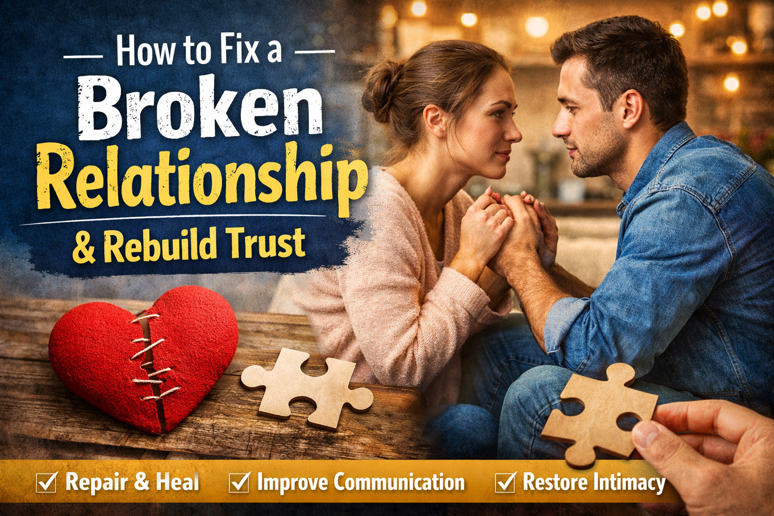 Relationship How to Fix a Broken Relationship and Rebuild Trust (Proven Step-by-Step Guide) by mario February 25, 2026 written by mario February 25, 2026 Bookmark 206 How to Fix a Broken Relationship and Rebuild Trust: A Complete Step-by-Step Guide Relationships are not always smooth. Even the strongest couples can face betrayal, misunderstandings, emotional distance, or repeated conflicts. If you’re searching for how to fix a broken relationship and rebuild trust, it means you still care — and that’s a powerful first step. The good news? Many broken relationships can be repaired when both partners are willing to put in the work. Rebuilding trust takes time, patience, emotional maturity, and intentional effort — but it is absolutely possible. This guide will walk you through practical, proven strategies to heal your relationship, restore trust, and reconnect emotionally. Why Relationships Break in the First Place Before you can fix a broken relationship, you must understand what caused the damage. Common reasons include: Lack of communication Infidelity or betrayal Emotional neglect Financial stress Constant criticism or disrespect Unresolved arguments Loss of intimacy Every relationship has its unique story. Identifying the root problem is essential because you cannot fix what you don’t understand. Step 1: Take Full Responsibility for Your Actions If you contributed to the problem, own it completely. Avoid excuses, blame-shifting, or minimizing the pain caused. Effective apology formula: Acknowledge what you did Show genuine remorse Explain how you plan to change Give them time to process Example: “I understand that my actions hurt you deeply. I take full responsibility, and I am committed to rebuilding your trust.” Without accountability, rebuilding trust is impossible. Step 2: Reopen Honest and Safe Communication Communication is the foundation of every healthy relationship. If trust is broken, communication is usually damaged too. Here’s how to improve it: Listen without interrupting Validate your partner’s feelings Avoid defensive reactions Speak calmly and clearly Use “I feel” statements instead of “You always” accusations Trust grows when both partners feel heard and understood. Step 3: Give It Time — Real Healing Is Not Instant Many people expect trust to return quickly after an apology. That’s unrealistic. Trust is rebuilt through consistent behavior over time — not words alone. If your partner is still cautious or distant, that doesn’t mean they don’t care. It means they’re protecting their heart. Be patient. Healing is a process, not an event. Step 4: Rebuild Trust Through Consistent Actions Trust returns when actions match words consistently. Here’s what that looks like: Keep your promises Be transparent Stop hiding information Follow through on commitments Be emotionally available Small consistent actions rebuild big trust. Step 5: Set Clear Boundaries Moving Forward Healthy relationships require boundaries. Discuss and agree on: What behavior is unacceptable How conflicts will be handled Communication expectations Personal space needs Boundaries prevent future misunderstandings and protect emotional safety. Step 6: Address the Root Cause — Not Just the Symptoms If infidelity occurred, ask why. If communication broke down, explore what triggered it. If emotional distance grew, identify when it started. Without addressing the root cause, the same issue may repeat. Consider relationship counseling if needed. Professional guidance can provide neutral insight and structured healing. Step 7: Rebuild Emotional and Physical Intimacy Slowly Emotional closeness often fades after trust is broken. To reconnect: Spend quality time together Plan meaningful conversations Recreate positive memories Practice physical affection gradually Express appreciation daily Intimacy should feel safe, not forced. Step 8: Forgive — But Understand What Forgiveness Means Forgiveness does not mean forgetting or pretending nothing happened. It means choosing to move forward without holding resentment as a weapon. If you are the one hurt, forgiveness will take time. If you caused the pain, don’t rush your partner’s healing timeline. Signs Your Relationship Can Be Saved Both partners are willing to work on it There is still love and respect You can communicate without constant hostility There is accountability Both of you want the relationship to succeed If only one person is trying, the relationship may struggle to survive. Common Mistakes to Avoid When Fixing a Broken Relationship Rushing forgiveness Constantly bringing up past mistakes Monitoring your partner obsessively Ignoring emotional needs Threatening breakup during every argument These behaviors can undo progress and reopen wounds. When to Walk Away Instead Not all relationships should be saved. Consider leaving if: There is repeated abuse (emotional or physical) There is no remorse after betrayal Trust is broken repeatedly without change One partner refuses to communicate Sometimes the healthiest decision is choosing peace over attachment. Final Thoughts: Love Requires Effort Learning how to fix a broken relationship and rebuild trust is about commitment, consistency, and courage. Trust may be fragile, but it is not impossible to restore. If both partners are willing to grow, communicate openly, and take responsibility, a broken relationship can become stronger than before. Healing is not about returning to what was — it’s about building something better. Frequently Asked Questions (FAQ) How long does it take to rebuild trust? It depends on the severity of the issue and the consistency of corrective actions. It can take months or even years. Can a relationship survive after cheating? Yes, but only if both partners are committed to transparency, accountability, and emotional repair. Should we try couples therapy? If communication feels impossible or trust feels permanently damaged, therapy can prov