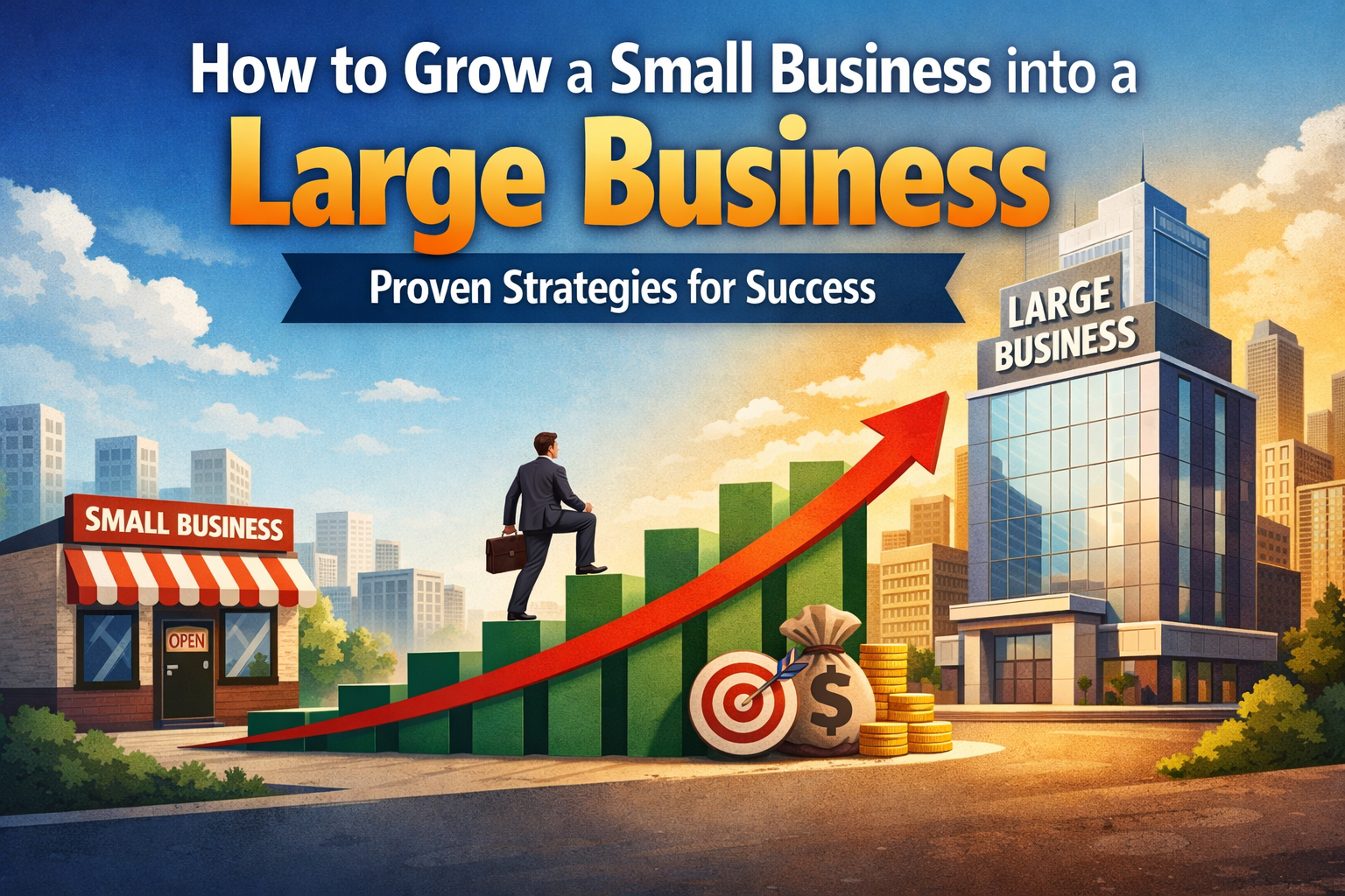 How to Grow a Small Business into a Large Business (Complete Step-by-Step Guide) Every successful company you see today once started as a small business. From local shops to global brands, growth doesn’t happen overnight—it is the result of smart strategies, consistency, and the ability to adapt. If you’re an entrepreneur or business owner looking to scale, this comprehensive guide will show you exactly how to grow a small business into a large business using proven, practical, and realistic methods. 1. Build a Strong Business Foundation Growth starts with a solid foundation. Many businesses fail not because they lack customers, but because they lack structure. Before scaling, you must ensure your business fundamentals are strong. Key Areas to Focus On: Clear Business Model: Know how you make money and how to increase it. Defined Target Audience: Understand who your customers are and what they need. Strong Value Proposition: Why should customers choose you over competitors? Without these basics, scaling your business will only amplify existing problems. 2. Develop a Growth Mindset and Vision To grow big, you must think big. A growth mindset allows you to see opportunities where others see obstacles. Define a clear long-term vision for your business. Ask yourself: Where do I want my business to be in 5–10 years? What impact do I want to make? What scale am I aiming for? Your vision will guide your decisions and keep you focused during challenges. 3. Focus on Customer Satisfaction and Retention Customers are the backbone of your business. While acquiring new customers is important, retaining existing ones is even more valuable. Why Customer Retention Matters: It costs less than acquiring new customers It increases lifetime value It builds brand loyalty Provide excellent service, listen to feedback, and always aim to exceed expectations. 4. Invest in Marketing and Brand Building You cannot grow if people don’t know about your business. Marketing is the engine that drives growth. Effective Marketing Strategies: Search Engine Optimization (SEO): Rank your website on Google Content Marketing: Create valuable blog posts and guides Social Media Marketing: Engage your audience on platforms Email Marketing: Build and nurture your customer base Strong branding ensures your business is recognizable and trusted. 5. Leverage Technology and Automation Technology is one of the biggest drivers of business growth. It allows you to do more with less effort. Use CRM systems to manage customers Automate marketing campaigns Implement accounting software Use analytics tools for data-driven decisions Automation frees up time so you can focus on strategic growth. 6. Build and Empower a Strong Team No business grows without people. Hiring the right team is crucial for scaling. Tips for Building a Strong Team: Hire for skill and attitude Delegate effectively Provide training and development Create a positive work culture A strong team allows your business to operate efficiently even without your constant presence. 7. Manage Finances Strategically Financial discipline is key to sustainable growth. Many businesses fail due to poor financial management. Track all income and expenses Maintain positive cash flow Reinvest profits into growth Reduce unnecessary costs Smart financial decisions will keep your business stable and scalable. 8. Expand Your Market and Offerings Growth often requires reaching new markets and offering more value. Ways to Expand: Launch new products or services Enter new locations or regions Target new customer segments Collaborate with other businesses Expansion increases revenue and strengthens your market position. 9. Create Scalable Systems and Processes If your business depends entirely on you, it cannot scale. You need systems that allow growth without chaos. Standardize workflows Document processes Use automation tools Implement performance tracking systems Scalable systems ensure consistent quality as your business grows. 10. Track Performance and Optimize Continuously Growth requires constant improvement. Track key metrics to understand what works and what doesn’t. Important Metrics: Revenue growth Customer acquisition cost Customer lifetime value Conversion rates Use data to make smarter decisions and improve performance. 11. Stay Consistent and Adapt to Change Business environments change constantly. To succeed, you must stay consistent while being flexible. Adapt to market trends Embrace innovation Stay committed to your goals Consistency builds trust, while adaptability ensures survival. 12. Learn from Successful Businesses Study companies that have successfully scaled. Understand their strategies, mistakes, and lessons. Learning from others can save you time and help you avoid costly errors. Conclusion Growing a small business into a large one is not a one-time effort—it’s a continuous journey. It requires strategic planning, consistent execution, and the willingness to evolve. By focusing on building a strong foundation, investing in marketing, leveraging technology, and creating scalable systems, you can transform your business into a thriving enterprise. Start implementing these strategies today, and take your business to the next level. Frequently Asked Questions (FAQs) How long does it take to grow a small business? Growth timelines vary depending on the industry, strategy, and consistency. It can take a few years to build a strong and scalable business. What is the fastest way to grow a business? The fastest way is through effective marketing, strong customer retention, and scalable systems. Do I need a large budget to scale my business? Not necessarily. Smart strategies, digital marketing, and reinvesting profits can drive growth even with limited funds. For more tips on How to grow a small business into a large business, check out our business and money category Business and Money Category.
