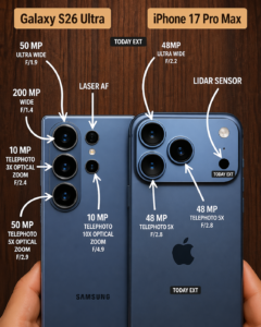 iPhone 17 Pro Max vs Samsung Galaxy S26 Ultra: Which Is Better in 2026? Introduction The competition between Apple and Samsung continues to dominate the global smartphone market in 2026. With the release of the iPhone 17 Pro Max and the anticipated Samsung Galaxy S26 Ultra, users are once again faced with a tough decision: which flagship device truly offers the best value, performance, and innovation? Both smartphones represent the pinnacle of engineering from two of the world’s leading tech companies. They combine cutting-edge hardware, advanced software ecosystems, and premium design. However, choosing between them is not just about specifications—it’s about your personal needs, preferences, and how you use your device daily. This in-depth comparison will break down everything you need to know—from design and performance to camera capabilities and pricing—so you can confidently decide which smartphone is best for you in 2026. Product Overview iPhone 17 Pro Max The iPhone 17 Pro Max builds on Apple’s legacy of delivering premium smartphones with a focus on performance, simplicity, and ecosystem integration. Known for its refined design and optimized software experience, Apple continues to push boundaries with each new release. This model is expected to feature an upgraded chipset, improved battery efficiency, and enhanced camera capabilities. Apple’s focus remains on delivering a smooth, reliable experience that works seamlessly across all Apple devices. Samsung Galaxy S26 Ultra Samsung’s Galaxy S26 Ultra is expected to showcase the company’s innovation in display technology, camera hardware, and multitasking capabilities. Samsung has consistently pushed the limits of what smartphones can do, especially in terms of screen quality and zoom photography. The S26 Ultra is likely to offer a feature-rich Android experience with deep customization options, making it ideal for users who want flexibility and control over their devices. iPhone 17 Pro Max vs Samsung Galaxy S26 Ultra: Full Comparison Table (2026) Feature iPhone 17 Pro Max Galaxy S26 Ultra Release Year 2025 2026 (Expected) Operating System iOS Android (One UI) Processor A19 Pro (Apple Silicon) Snapdragon / Exynos (Region-based) Display OLED, ProMotion AMOLED, High Refresh Rate Battery Capacity Not officially disclosed (High efficiency) ~5,000mAh (Expected) Battery Performance Up to ~39 hours video playback Strong endurance, faster charging Main Camera 48MP Triple Camera 200MP Quad Camera (Expected) Zoom Capability Up to 8x Optical Zoom Advanced Periscope Zoom Video Recording ProRes, Dolby Vision HDR 8K Video, Advanced AI Processing Front Camera ~18MP (AI enhanced) High-res selfie camera (Expected) Customization Limited Extensive S Pen No Yes Starting Price (USD) $1,199+ $1,199 – $1,299 (Expected) Price in Nigeria (₦) ₦1.8M – ₦2.3M+ ₦1.7M – ₦2.2M+ Best For Performance, video, ecosystem Zoom, display, customization Battery Performance Analysis The iPhone 17 Pro Max features a slightly larger battery (~5,088mAh) and delivers longer real-world battery life due to Apple’s efficient A19 Pro chip and iOS optimization. Tests show it can last nearly 18 hours in continuous use. The Galaxy S26 Ultra uses a 5,000mAh battery but compensates with faster 60W charging, making it ideal for users who prefer quick top-ups during the day. Camera Features Breakdown The iPhone 17 Pro Max focuses on image accuracy, natural colors, and professional video recording, making it a top choice for content creators and videographers. iPhone 17 Pro Max Camera Features (Confirmed) Triple 48MP camera system (Main + Ultra Wide + Telephoto) Up to 8x optical zoom Advanced video capabilities: ProRes RAW Dolby Vision HDR Dual Capture (front and rear cameras simultaneously) New 18MP AI-powered “Center Stage” front camera Strength The iPhone 17 Pro Max excels in video recording, color accuracy, and overall content creation, making it an ideal choice for creators, vloggers, and professionals. The Galaxy S26 Ultra stands out with its powerful 200MP sensor and dual telephoto lenses, offering superior zoom and more versatility for photography. Galaxy S26 Ultra Camera Features (Latest Reliable Info) Expected 200MP main camera Quad-camera system Strong periscope zoom (industry-leading) AI-enhanced photography features Strength The Galaxy S26 Ultra stands out for its powerful zoom capabilities, exceptional detail, and overall versatility, making it ideal for photography enthusiasts and users who want maximum camera flexibility. Key Features iPhone 17 Pro Max Next-generation Apple silicon for faster performance and efficiency iOS ecosystem with long-term software updates Advanced computational photography system Premium materials and durable design Strong privacy and security features Samsung Galaxy S26 Ultra High-resolution AMOLED display with high refresh rate Powerful processor for gaming and multitasking Advanced zoom camera system S Pen support for productivity Highly customizable Android interface Pros and Cons iPhone 17 Pro Max Pros: Seamless integration with Apple ecosystem Consistent and long-term software updates Excellent performance optimization High resale value Cons: Limited customization compared to Android Premium pricing Less flexibility with third-party apps Samsung Galaxy S26 Ultra Pros: Extensive customization options Superior zoom capabilities Large, immersive display Versatile productivity features Cons: Software experience can vary by region Large size may not be comfortable for all users Battery optimization may not match Apple efficiency Performance & User Experience Performance is one of the most important factors when choosing a flagship smartphone. Apple has long been known for its tight integration between hardware and software, resulting in smooth and efficient performance. The iPhone 17 Pro Max is expected to deliver lightning-fast speeds, excellent battery management, and long-term stability. On the other hand