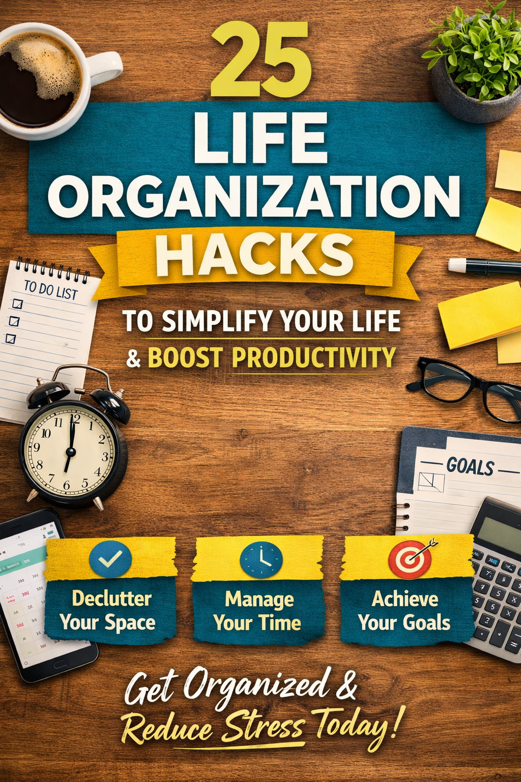 Life Style 25 Life Organization Hacks to Simplify Your Life and Boost Productivity by mario March 21, 2026 written by mario March 21, 2026 Bookmark 10 25 Life Organization Hacks to Simplify Your Life and Boost Productivity Published on: March 21, 2026 In a world filled with constant distractions, endless responsibilities, and overwhelming information, staying organized has become one of the most valuable skills you can develop. Whether you’re a student, entrepreneur, employee, or content creator, the way you organize your life directly impacts your productivity, mental clarity, and overall success. Many people struggle not because they lack motivation, but because they lack structure. When your life is disorganized, even simple tasks feel overwhelming. But when you create systems that support your goals, everything becomes easier, faster, and more efficient. This comprehensive guide will walk you through 25 powerful life organization hacks that will help you simplify your routine, eliminate chaos, and take control of your time. Why Life Organization Is the Foundation of Success Organization is not just about keeping things tidy—it’s about creating clarity in your life. When you know what to do, when to do it, and how to do it, you eliminate decision fatigue and reduce stress. Organized individuals are more productive, less anxious, and more likely to achieve their goals. They spend less time searching for things, procrastinating, or reacting to problems—and more time taking intentional action. Simply put, if you want to improve your life, start by organizing it. 1. Start Your Day with a Clear Plan Every productive day begins with clarity. Before you dive into your tasks, take a few minutes to outline what you want to accomplish. This simple habit gives your day direction and prevents you from drifting into distractions. Focus on your top 3 priorities. These are the tasks that will have the biggest impact on your goals. Completing them early gives you a sense of achievement and momentum. You should also check this important tips [10 Morning Habits of Highly Successful People in Their 20s] Click here to read more. 2. Apply the 80/20 Rule (Pareto Principle) Not all tasks are created equal. The Pareto Principle states that 80% of your results come from 20% of your efforts. Identify the high-impact activities in your life and prioritize them. This approach prevents you from wasting time on low-value tasks and helps you focus on what truly matters. 3. Declutter Your Physical Space Your environment has a powerful influence on your mindset. A cluttered space leads to a cluttered mind. By removing unnecessary items, you create a calm and focused atmosphere. Start small—your desk, your room, or your workspace. Over time, expand to other areas of your life. For more practical tips, see our guide on [How to Declutter Your Home Faster: The Ultimate Step-by-Step Guide for a Clutter-Free Life] Click here to read more. 4. Build a Consistent Morning Routine Your morning sets the tone for your entire day. A well-structured routine helps you start with intention instead of reacting to external demands. Include activities like planning, exercise, reading, or meditation. Even 30 minutes of intentional morning time can transform your productivity. 5. Use Digital Tools to Stay Organized Technology can be your greatest ally when used correctly. Calendar apps, task managers, and note-taking tools help you keep everything in one place. Instead of relying on memory, create a reliable system that stores and organizes your information. 6. Batch Similar Tasks Together Switching between tasks reduces efficiency and drains mental energy. Batching allows you to focus on similar activities at once. For example, respond to emails at specific times instead of throughout the day. This minimizes distractions and improves focus. 7. Follow the Two-Minute Rule If a task takes less than two minutes, do it immediately. This simple rule prevents small tasks from piling up and becoming overwhelming. 8. Plan Your Week in Advance Weekly planning gives you a bigger picture of your commitments and priorities. It helps you allocate time effectively and avoid last-minute stress. 9. Set Clear and Achievable Goals Without goals, organization has no direction. Define what you want to achieve and break it into smaller, actionable steps. 10. Avoid Multitasking Multitasking reduces productivity and increases mistakes. Focus on one task at a time for better results and higher efficiency. 11. Use Checklists for Everything Checklists are powerful tools for organization. They ensure consistency and prevent important steps from being overlooked. 12. Organize Your Finances Financial organization is essential for peace of mind. Track your income, expenses, and savings regularly. 13. Set Deadlines for Tasks Deadlines create urgency and help you stay focused. Even self-imposed deadlines can significantly improve productivity. 14. Learn to Say No Not every opportunity is worth your time. Saying no allows you to focus on what truly matters. 15. Create a Night Routine Preparing for the next day at night reduces stress and improves your morning productivity. 16. Use Labels and Categories Organizing items into categories makes them easier to find and manage. 17. Track Your Habits Tracking helps you stay consistent and identify areas for improvement. 18. Take Regular Breaks Breaks improve focus and prevent burnout. Productivity is not about working nonstop—it’s about working smart. 19. Automate Repetitive Tasks Automation saves time and reduces manual effort. Identify repetitive tasks and find ways to automate them. 20. Keep a Journal Journaling helps you organize your thoughts, reflect on your progress, and gain clarity. 21. Review Your Progress Weekly Regular reviews help you stay on track and make necessary adjustments. 22. Focus on Systems Instead of Goals Goals give direction, but systems create results. Build habits and routines that supp