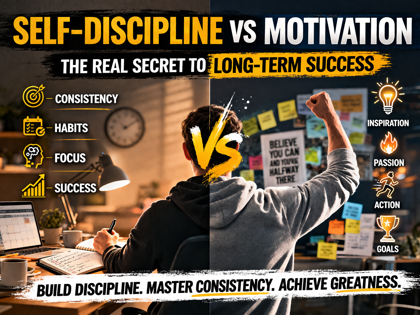Life Style Self-Discipline vs Motivation: The Ultimate Guide to Achieving Long-Term Success by mario March 21, 2026 written by mario March 21, 2026 Bookmark 4 Self-Discipline vs Motivation: The Ultimate Guide to Achieving Long-Term Success In today’s fast-paced world, everyone is searching for the secret to success. Whether it’s building a profitable online business, staying consistent with your goals, or improving your personal life, one question always comes up: What matters more — self-discipline or motivation? At first glance, motivation seems like the key driver. After all, it’s that powerful feeling that gets you excited to start something new. But here’s the reality most people don’t realize: Motivation gets you started, but self-discipline is what keeps you going. If you rely only on motivation, you will struggle with consistency. If you build self-discipline, you can achieve almost anything — regardless of how you feel. In this comprehensive guide, we’ll break down everything you need to know about self-discipline vs motivation, including their differences, why discipline is more important, and how you can build it step by step. Understanding Motivation Motivation is the emotional drive that pushes you to take action. It is often triggered by inspiration, excitement, fear, or external rewards. Motivation is what makes you say, “I’m going to change my life starting today.” Types of Motivation There are two main types of motivation: Intrinsic Motivation: Comes from within (passion, purpose, personal satisfaction) Extrinsic Motivation: Comes from external rewards (money, recognition, praise) Both types can be powerful, but they share one major weakness — they don’t last forever. Why Motivation Fades Quickly Have you ever felt extremely motivated one day, only to lose that energy the next? That’s because motivation is tied to emotions, and emotions constantly change. Your mood changes You get tired Life challenges appear Distractions take over This is why many people start projects but never finish them. They depend on motivation instead of building a system. Understanding Self-Discipline Self-discipline is the ability to take action regardless of how you feel. It is the habit of doing what needs to be done, even when you don’t feel like doing it. Unlike motivation, self-discipline is not based on emotions. It is based on commitment, routine, and long-term vision. Characteristics of Self-Discipline Consistency over time Control over impulses Focus on long-term results Ability to delay gratification A disciplined person doesn’t wait to “feel ready.” They act anyway. Self-Discipline vs Motivation: A Deep Comparison Motivation Self-Discipline Emotion-based Habit-based Temporary Long-lasting Unpredictable Reliable Starts action Sustains action Depends on mood Independent of mood Why Self-Discipline is the Real Game Changer If you study highly successful people, you’ll notice one thing: they don’t rely on motivation. They rely on systems and habits. Discipline creates consistency, and consistency creates results. 1. Discipline Builds Momentum When you take action daily, even in small amounts, you build momentum. Over time, this momentum leads to massive results. 2. Discipline Eliminates Excuses Motivation says, “I’ll do it when I feel like it.” Discipline says, “I’ll do it because it must be done.” 3. Discipline Creates Freedom Ironically, discipline leads to freedom. When you build strong habits, you gain control over your time, finances, and future. Real-Life Example: Blogging Success Let’s bring this closer to your reality as a blogger. Blogger A: Writes only when motivated Blogger B: Writes consistently every day After one year: Blogger A has a few posts with no traffic Blogger B has hundreds of posts, SEO rankings, and income The difference is not talent — it’s discipline. The Science Behind Discipline Self-discipline is closely linked to habit formation and brain function. When you repeat an action consistently, your brain creates neural pathways that make the behavior automatic. This means that over time, discipline becomes easier. What feels hard today can become effortless tomorrow — if you stay consistent. How to Build Self-Discipline (Step-by-Step Guide) 1. Start Small Don’t try to change your entire life overnight. Start with small, manageable actions. Example: Write for 30 minutes daily instead of aiming for 5 hours. 2. Create a Clear Routine A routine removes decision-making. When you have a fixed schedule, you don’t waste time thinking about whether to act. 3. Use the “No Excuses” Rule Make a personal rule: no matter what happens, you show up. Even if you perform at 50%, consistency matters more than perfection. 4. Eliminate Distractions Distractions are the biggest enemy of discipline. Identify what wastes your time and reduce it. Limit social media Turn off notifications Create a focused workspace We’ve broken this down step-by-step in this article Digital Detox for Mental Clarity: The Ultimate Guide to Reclaim Focus, Reduce Stress, and Boost Productivity Click here to read more. 5. Track Your Progress Tracking keeps you accountable. When you see your progress, you become more motivated to continue. 6. Build Habits, Not Goals Goals are important, but habits are what get you there. Focus on daily actions instead of just outcomes. How to Use Motivation Effectively Motivation is not useless — it just needs to be used correctly. Use Motivation To: Start new projects Set clear goals Get initial energy Then switch to discipline to maintain progress. Common Mistakes People Make 1. Waiting to Feel Ready You will rarely feel 100% ready. Start anyway. 2. Relying Only on Motivation This leads to inconsistency and frustration. 3. Setting Unrealistic Goals Start small and build gradually. 4. Giving Up Too Early Success takes time. Stay consistent. Powerful Daily Habits to Build Discipline Wake up at the same time
