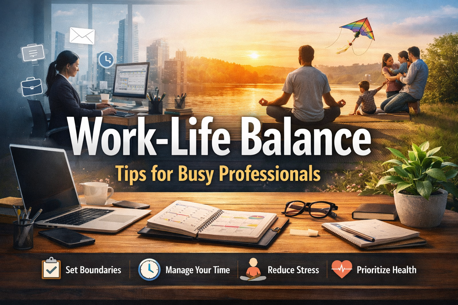 Life Style Work-Life Balance Tips for Busy Professionals: The Ultimate 2026 Authority Guide by mario February 27, 2026 written by mario February 27, 2026 Bookmark 21 The Ultimate Guide to Work-Life Balance Tips for Busy Professionals (2026 Edition) In 2026, work has become more flexible — but also more demanding. Remote jobs, hybrid schedules, side hustles, and 24/7 digital communication have made it harder than ever to truly “switch off.” For ambitious professionals, the line between career growth and burnout is thinner than most realize. If you constantly feel overwhelmed, mentally drained, or stuck in an endless cycle of productivity without satisfaction, this guide is for you. This comprehensive, research-informed article explores work-life balance tips for busy professionals that actually work in real life — not just in theory. By the end, you’ll have a clear roadmap to protect your energy, grow your career, and enjoy your personal life without guilt. Why Work-Life Balance Is a Competitive Advantage in 2026 Work-life balance is no longer a “soft” concept — it is a performance strategy. According to global workplace research from organizations such as the World Health Organization (WHO) and leading occupational health institutions, chronic stress significantly increases risks of anxiety, cardiovascular issues, sleep disorders, and reduced cognitive performance. Professionals who prioritize balance tend to: Make better long-term decisions Have stronger emotional intelligence Demonstrate higher creativity Build healthier professional relationships Sustain career growth over decades Balance is not about working less. It is about optimizing energy, clarity, and sustainability. The Real Causes of Work-Life Imbalance Before fixing the problem, you must understand it. Common causes include: Always-on digital culture Poor time management systems Unclear workplace expectations Perfectionism and overcommitment Remote work boundary erosion Financial pressure and side hustles Identifying your specific imbalance triggers is the first step toward meaningful change. 25 Proven Work-Life Balance Tips for Busy Professionals 1. Define Your Non-Negotiables Decide what truly matters: family dinner, gym sessions, prayer time, reading, sleep. Protect these blocks first before filling your calendar with work. 2. Set Clear Work Hours — Even If You Work Remotely Create psychological separation by having a start and stop time daily. Shut down your laptop fully when your workday ends. 3. Design a Dedicated Workspace Working from your bed or couch confuses your brain. A defined workspace trains your mind to associate that area with productivity only. 4. Use Time Blocking Divide your day into focused segments for deep work, meetings, email, and personal time. Structured time reduces overwhelm. 5. Apply the 80/20 Rule Identify the 20% of tasks generating 80% of results. Focus on high-impact actions instead of staying busy. 6. Learn Strategic Delegation Delegation is leadership, not weakness. Offload tasks that do not require your unique skillset. 7. Schedule “White Space” Leave empty buffer time between meetings. Constant back-to-back scheduling increases stress. 8. Master the Art of Saying No Polite refusal protects your capacity. Overcommitment is one of the biggest burnout triggers. 9. Limit After-Hours Communication Turn off work notifications after designated hours. Use autoresponders if necessary. 10. Adopt the Pomodoro Technique Work in 25-minute focused sessions followed by 5-minute breaks to maintain cognitive stamina. 11. Protect Your Sleep Ruthlessly Sleep is not optional. Aim for 7–8 hours consistently. Chronic sleep deprivation destroys productivity. 12. Exercise at Least 3–4 Times Weekly Physical movement reduces cortisol (stress hormone) and improves mental clarity. 13. Practice Daily Mindfulness Ten minutes of meditation, breathing exercises, or journaling can reset your nervous system. 14. Conduct Weekly Reviews Assess what drained you and what energized you. Adjust your next week accordingly. 15. Avoid Multitasking Multitasking reduces efficiency by up to 40%. Focus on one task at a time. 16. Create Digital Detox Periods Set specific hours daily without social media or email. Your brain needs recovery time. 17. Clarify Expectations With Your Employer Misalignment causes hidden stress. Open communication prevents resentment. 18. Stop Equating Busyness With Success High performers focus on impact, not hours logged. 19. Build a Strong Support System Surround yourself with mentors, friends, and family who understand your professional journey. 20. Take Your Vacation Days Time off improves long-term performance and creativity. 21. Set Realistic Career Milestones Break large ambitions into achievable quarterly targets. 22. Automate Repetitive Tasks Use scheduling tools, workflow automation, and productivity apps to reduce manual workload. 23. Separate Financial Stress From Work Stress Create a financial plan so money pressure does not force unhealthy overworking. 24. Recognize Burnout Early Warning signs include exhaustion, cynicism, irritability, and declining performance. 25. Reassess Life Priorities Quarterly Your career stage evolves. Your balance strategy should evolve too. Work-Life Balance for Entrepreneurs and Side Hustlers If you run a business or manage multiple income streams, boundaries are even more critical. Entrepreneurs often struggle with switching off because revenue depends on effort. However, sustainable entrepreneurship requires recovery cycles. Consider implementing: Strict work shutdown rituals Pre-planned rest days Delegating administrative tasks Batch content creation Work-Life Balance in a Hybrid and Remote World Hybrid professionals face unique challenges: commuting some days, remote isolation others. To adapt: Maintain consistent morning routines Keep clear digital boundaries Separate personal and professional devices if possible Communicate availabi